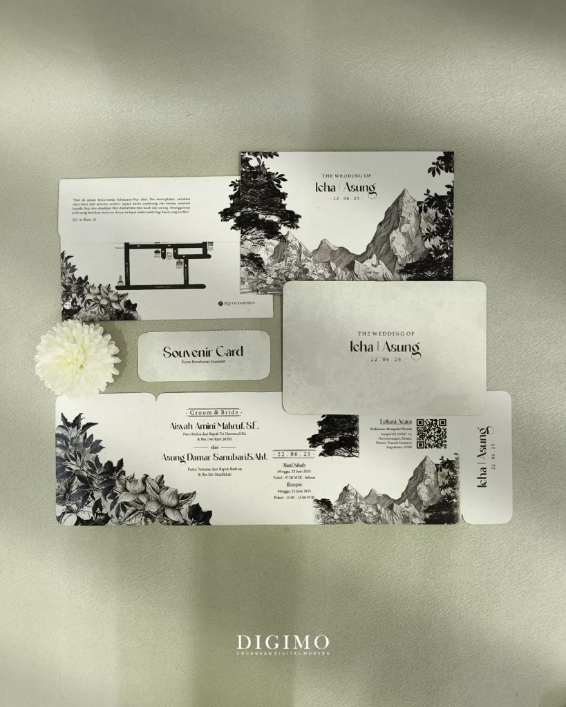 Eternal mengusung tema natural monokrom dengan ilustrasi pegunungan yang tenang dan artistik. Kesan minimalisnya terasa elegan, intim, dan penuh makna.