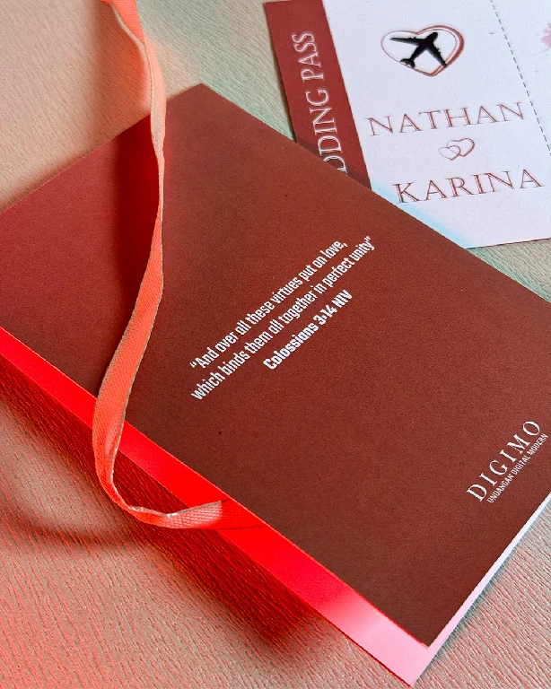 Love Airlines menghadirkan konsep undangan bergaya paspor dan boarding pass yang menjadikan momen pernikahan terasa seperti perjalanan istimewa menuju babak baru kehidupan.